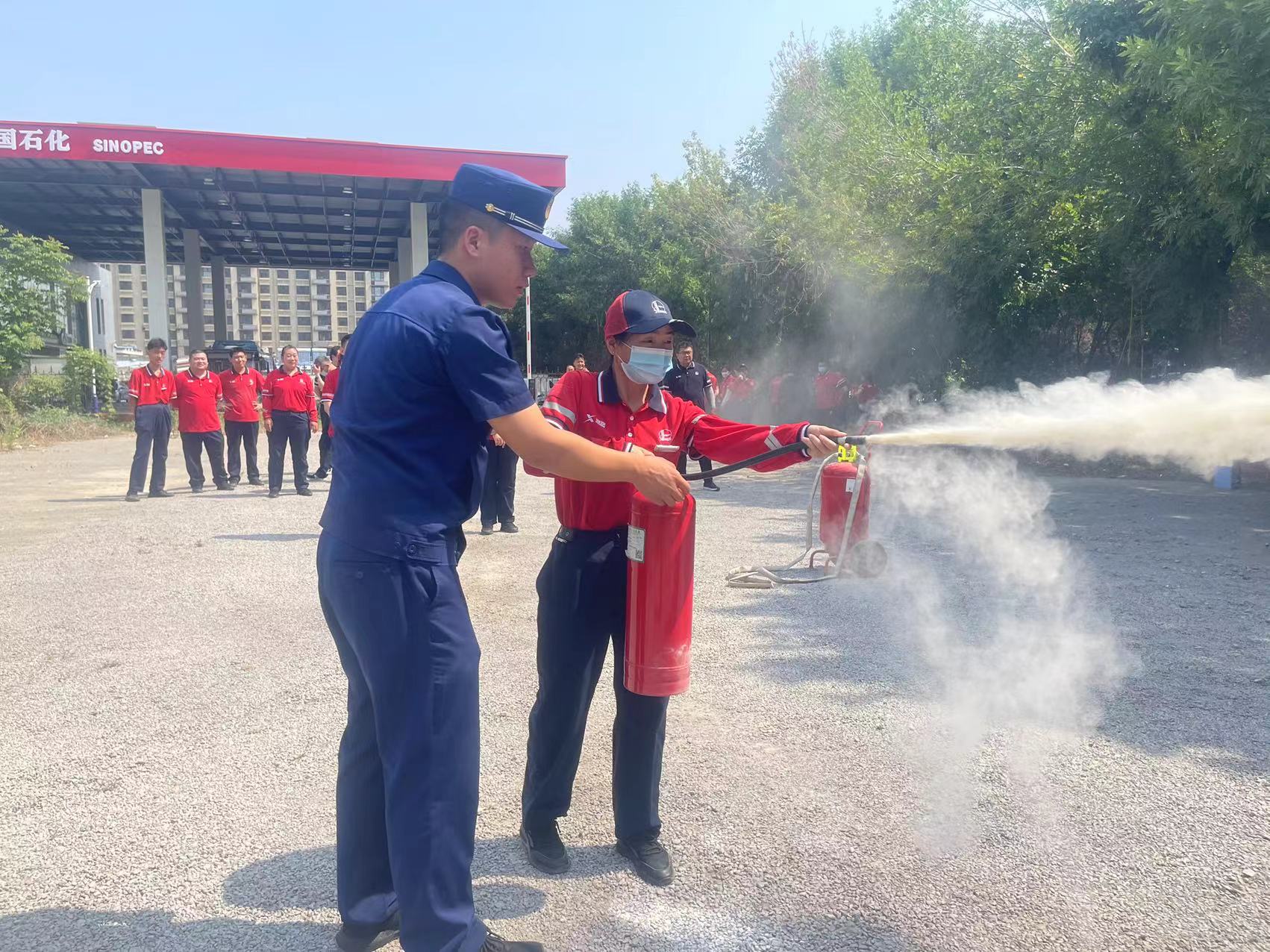 消防實戰(zhàn)演練選取了加油機起火應(yīng)急突發(fā)事件進行演練。演練前槐蔭區(qū)消防中隊郭良俊隊長講解了加油站消防安全注意事項、滅火器器材的使用及火災(zāi)撲救方式等消防知識,并演示了消防器材的操作方法。