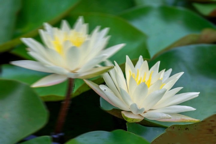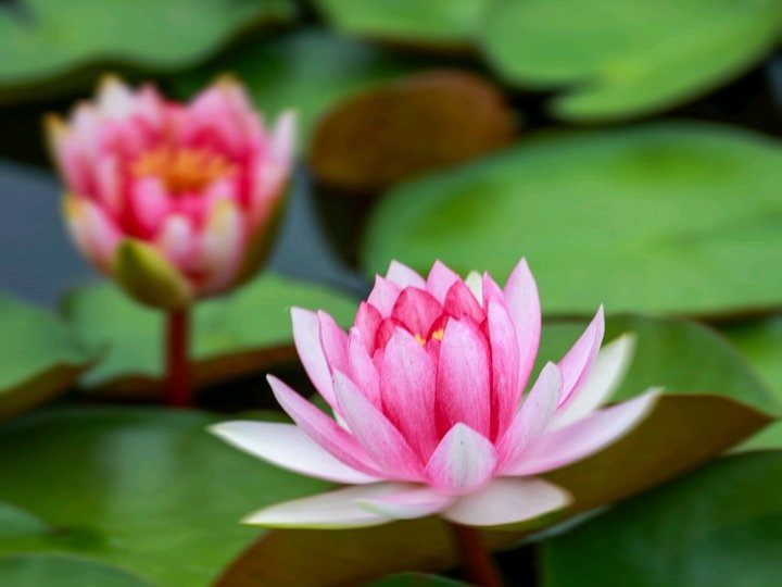 秋風(fēng)起時(shí),睡蓮輕展笑顏,與夏荷遺韻共舞,清麗脫俗,宛如睡夢(mèng)中的仙子,喚醒秋的柔情與雅致。