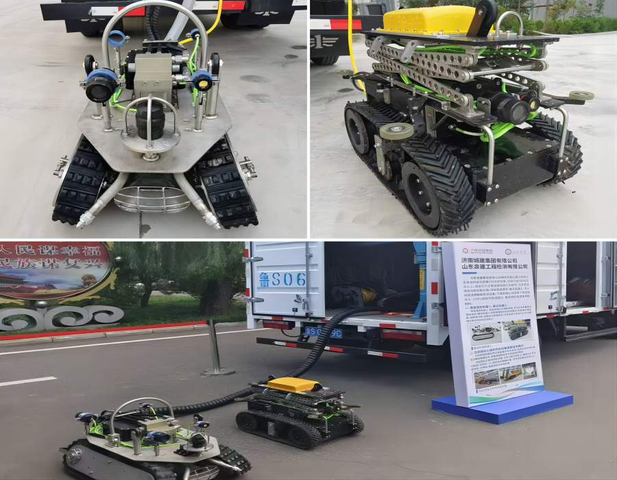 城建集團公司創(chuàng)新研發(fā)的管道清淤機器人、管道雷達檢測機器人兩款智能建造高新裝備均達到IP68等級,可在管道滿水情況下作業(yè)。其中,管道清淤機器人對管道內(nèi)淤堵采用聲吶定位,前端搭載高壓噴頭及吸污口,實現(xiàn)DN800及以上管徑管道的快速高效清淤;管道雷達檢測機器人搭載高性能防水雷達天線,并設(shè)有升降裝置,可根據(jù)不同管徑,靈活調(diào)整雷達高度,實現(xiàn)DN800及以上管徑管道內(nèi)表面及壁后缺陷的精準(zhǔn)檢測。