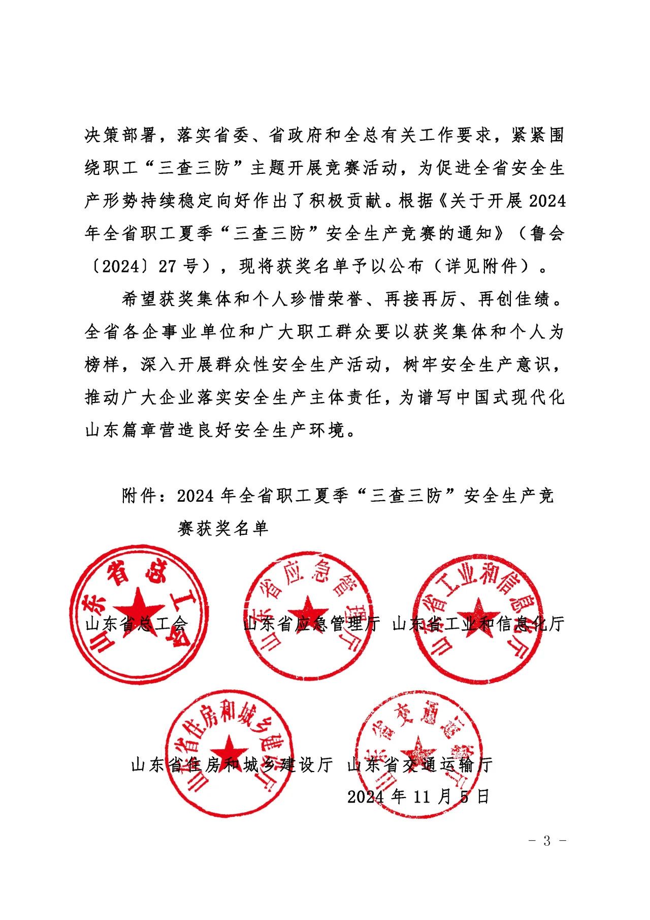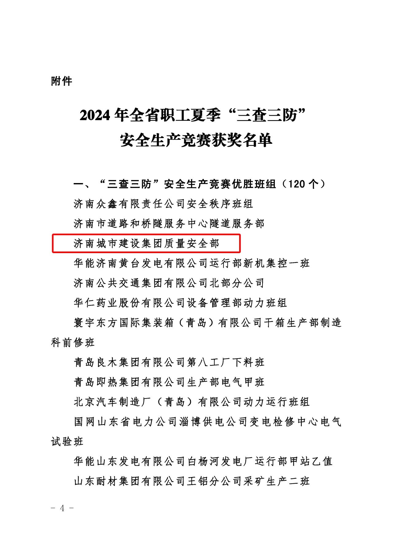 近日,山東省總工會(huì)、山東省應(yīng)急管理廳、山東省工業(yè)和信息化廳、山東省住房和城鄉(xiāng)建設(shè)廳、山東省交通運(yùn)輸廳聯(lián)合發(fā)布了《關(guān)于公布2024年全省職工夏季“三查三防”安全生產(chǎn)競(jìng)賽獲獎(jiǎng)情況的通知》,濟(jì)南城市建設(shè)集團(tuán)質(zhì)量安全部積極響應(yīng)上級(jí)主管部門(mén)的號(hào)召,按照集團(tuán)黨委的科學(xué)部署,全面而深入地開(kāi)展了各項(xiàng)安全專題活動(dòng),榮獲“三查三防”安全生產(chǎn)競(jìng)賽優(yōu)勝班組榮譽(yù)稱號(hào)。