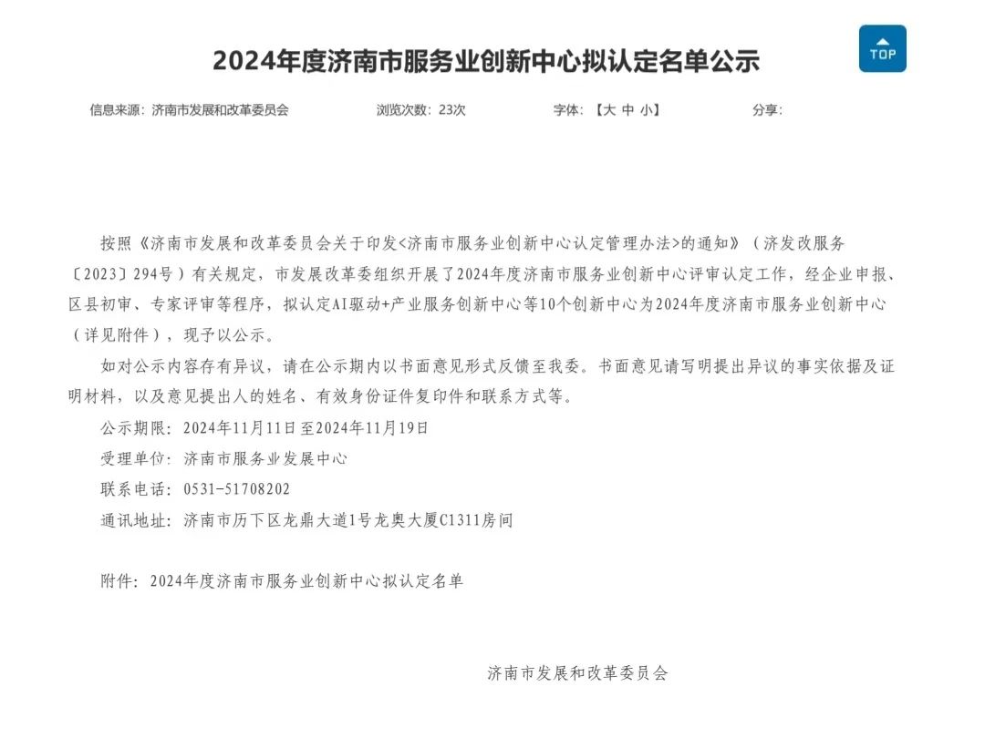 近日,濟(jì)南市發(fā)展和改革委員會(huì)公示《2024年度濟(jì)南市服務(wù)業(yè)創(chuàng)新中心擬認(rèn)定名單》,建設(shè)集團(tuán)所屬山東金衢設(shè)計(jì)咨詢集團(tuán)有限公司技術(shù)創(chuàng)新中心獲批2024年度濟(jì)南市服務(wù)業(yè)創(chuàng)新中心。