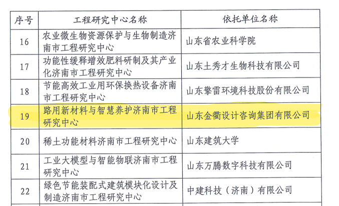 近日,濟(jì)南市發(fā)展和改革委員會(huì)下發(fā)《關(guān)于公布2024年度認(rèn)定濟(jì)南市工程研究中心名單的通知》,建設(shè)集團(tuán)所屬山東金衢設(shè)計(jì)集團(tuán)有限公司“路用新材料與智慧養(yǎng)護(hù)濟(jì)南市工程研究中心”(以下簡稱工程研究中心)經(jīng)嚴(yán)格考察、評(píng)審和公示,成功入選,這是2024年金衢集團(tuán)公司繼濟(jì)南市重點(diǎn)實(shí)驗(yàn)室、專家工作站、服務(wù)業(yè)創(chuàng)新中心后獲批的又一科創(chuàng)平臺(tái)。