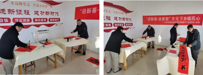 活動(dòng)中,山商書畫院的書法家為村民們現(xiàn)場(chǎng)書寫春聯(lián),將傳統(tǒng)文化與新春祝福相結(jié)合,讓村民們感受到了濃濃的節(jié)日氣氛和文化的魅力。